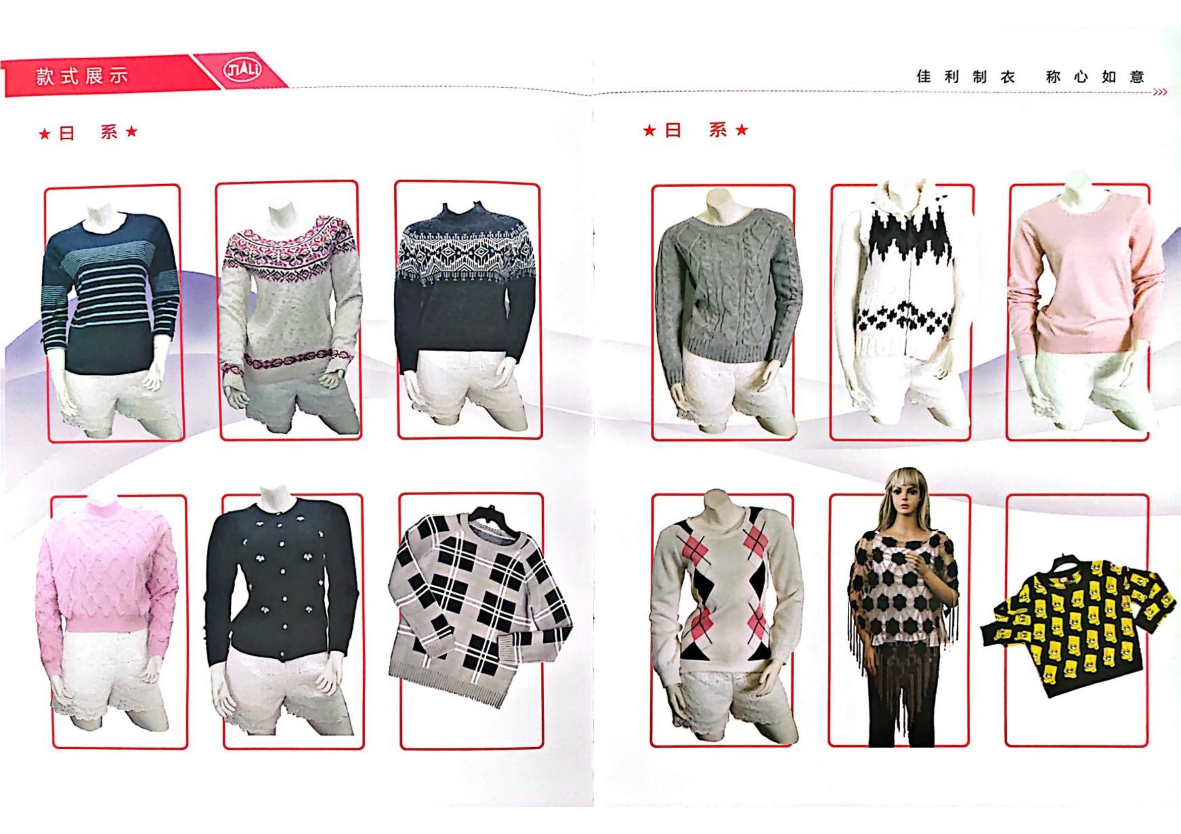 山東省乳山市佳利制股份有限公司于2001年2月成立,位于乳山市城區(qū)工業(yè)園營口路?,F(xiàn)有從業(yè)人員260人,其中男性100人,女性160人。固定資產(chǎn)5000萬元,占地22000㎡,建筑面積13800㎡。主要生產(chǎn)各種針型的毛衫及手鉤、刺繡等工藝服裝,針織、梭織面料服裝,主要銷往日本、美國、意大利、英國等幾十個(gè)國家和地區(qū)。